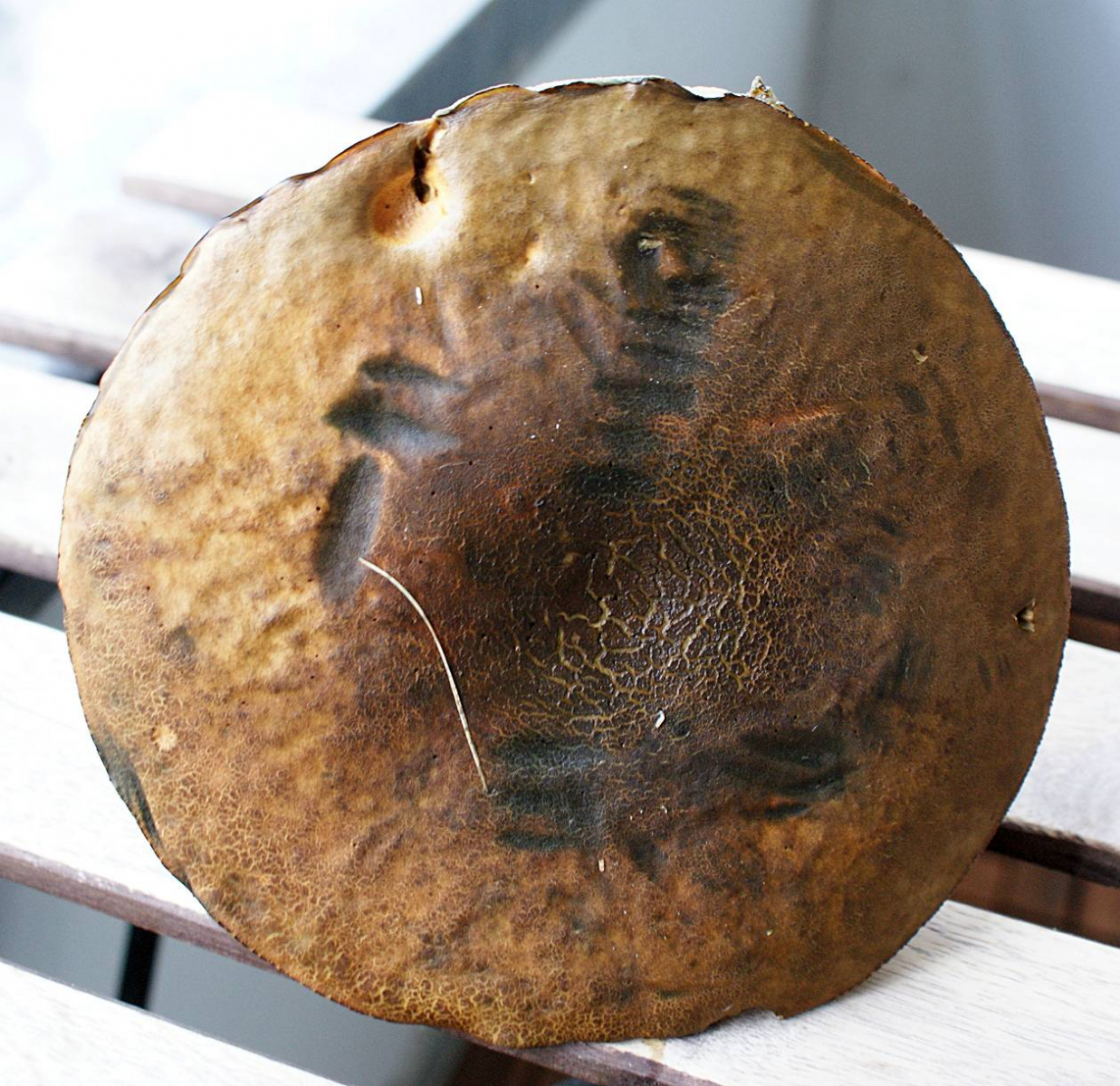 Hut: Braun mit Gelbtönen, rissig