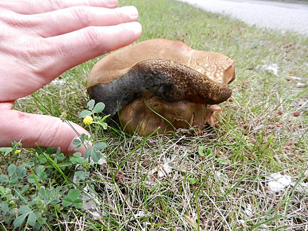 Zum Abschluss noch eine alte Netzhexe mit sehr dickem Stiel auf dem Grünstreifen einer vielbefahrenen Straße: