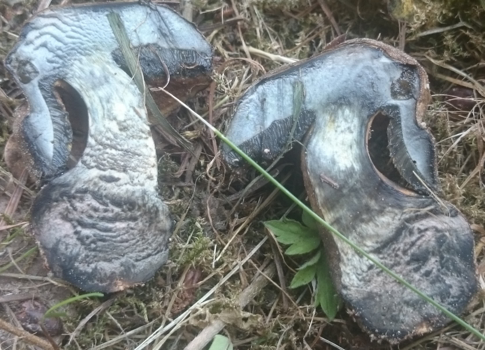 -Alle Pilze hatten relativ hellbraune bis gelbliche Hüte die auf der Huthaut geblaut haben.