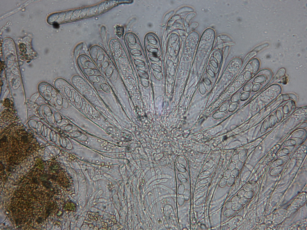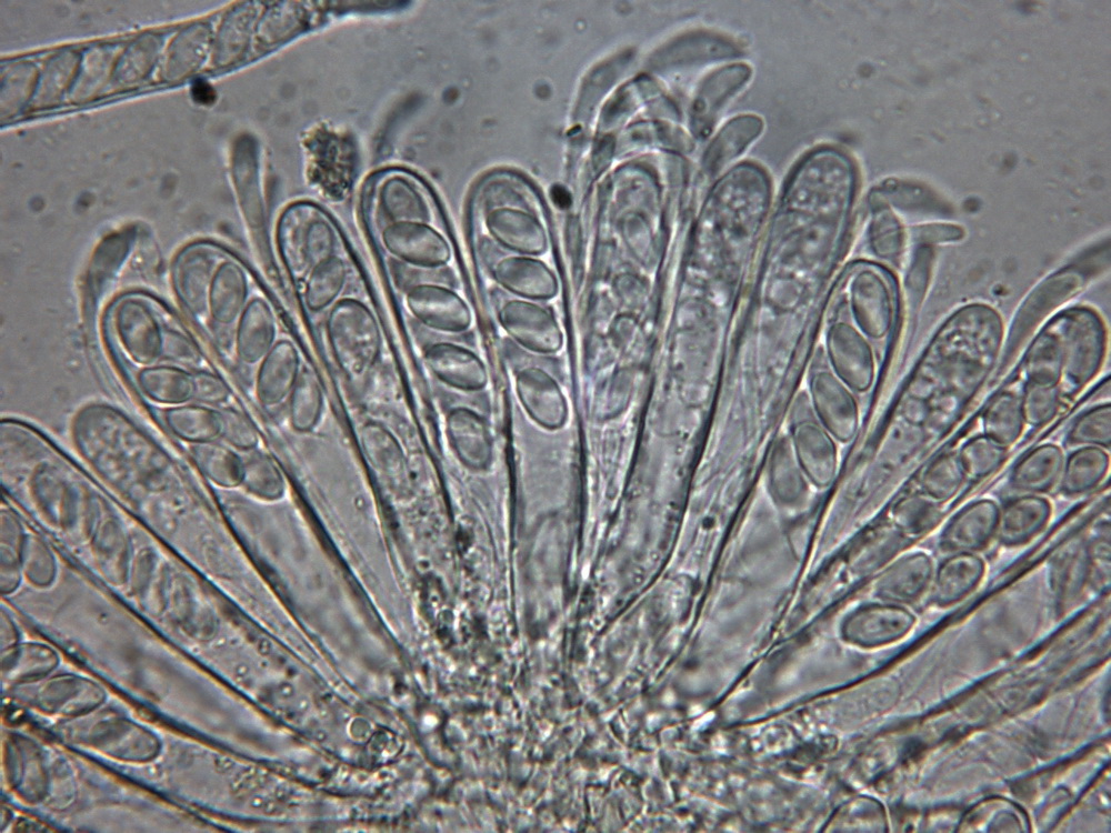 Asci: 61 – 72 x 7,5 – 10 µm, Sporenlage zuerst einreihig, später zweireihig