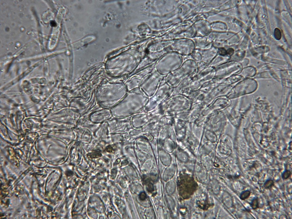 Mikroskopisch ist dann schnell alles klar. Kimbrough et al. geben die Sporen mit 5-6 µm etwas zu schmal an.
