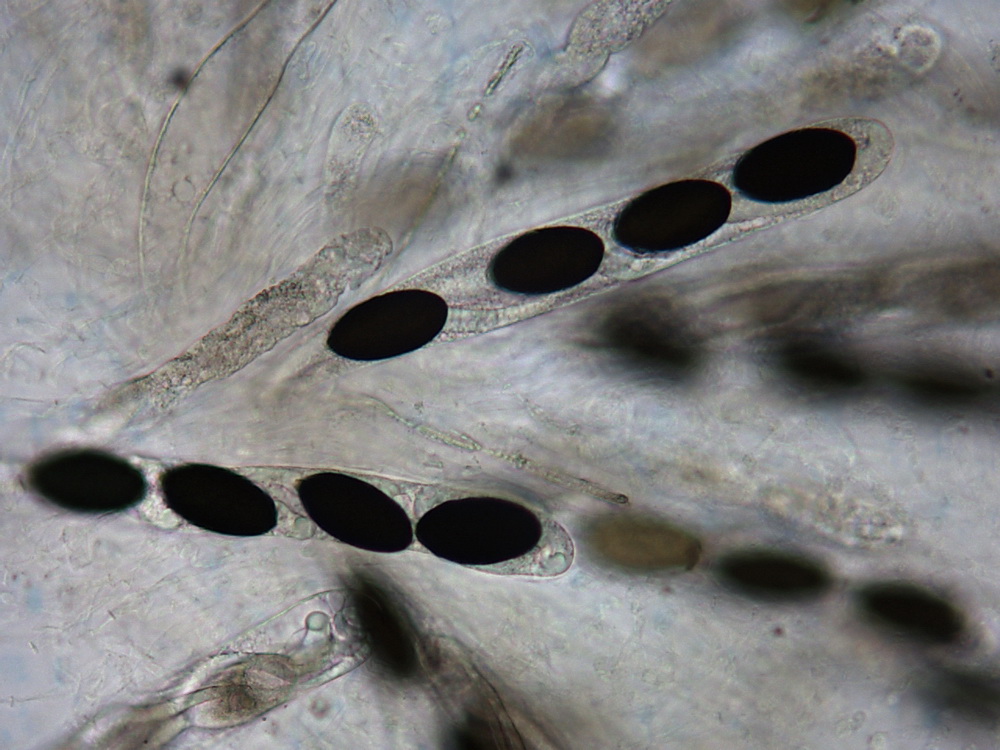 Was insbesondere auffällt, sind die Paraphysen mit ihren ungewöhnlichen riesigen keulig-kopfigen Enden.