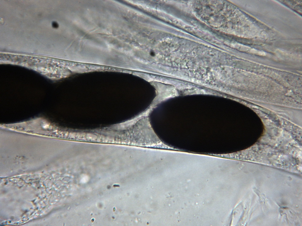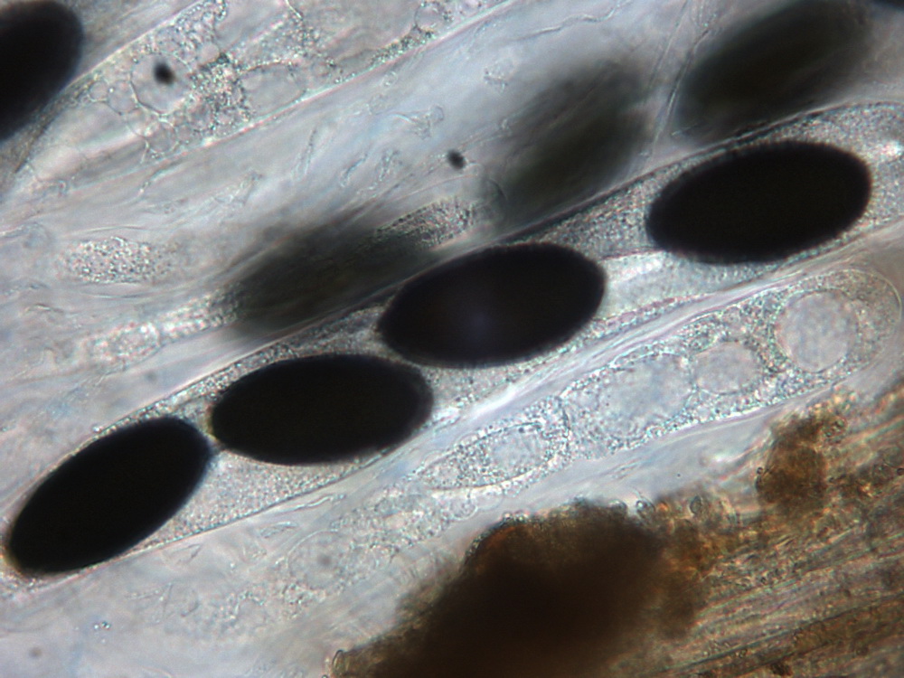 Die noch unreifen Sporen in den Schläuchen zögern die Bestimmung möglicherweise noch etwas bis Morgen hinaus,