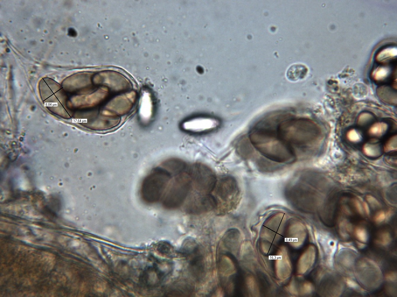 Sporen: 30,8 - 32,1 x 14,5 - 15,4 µm