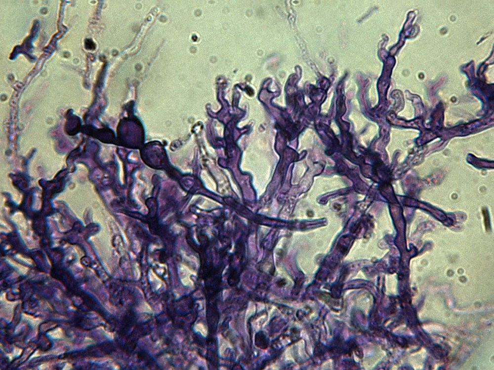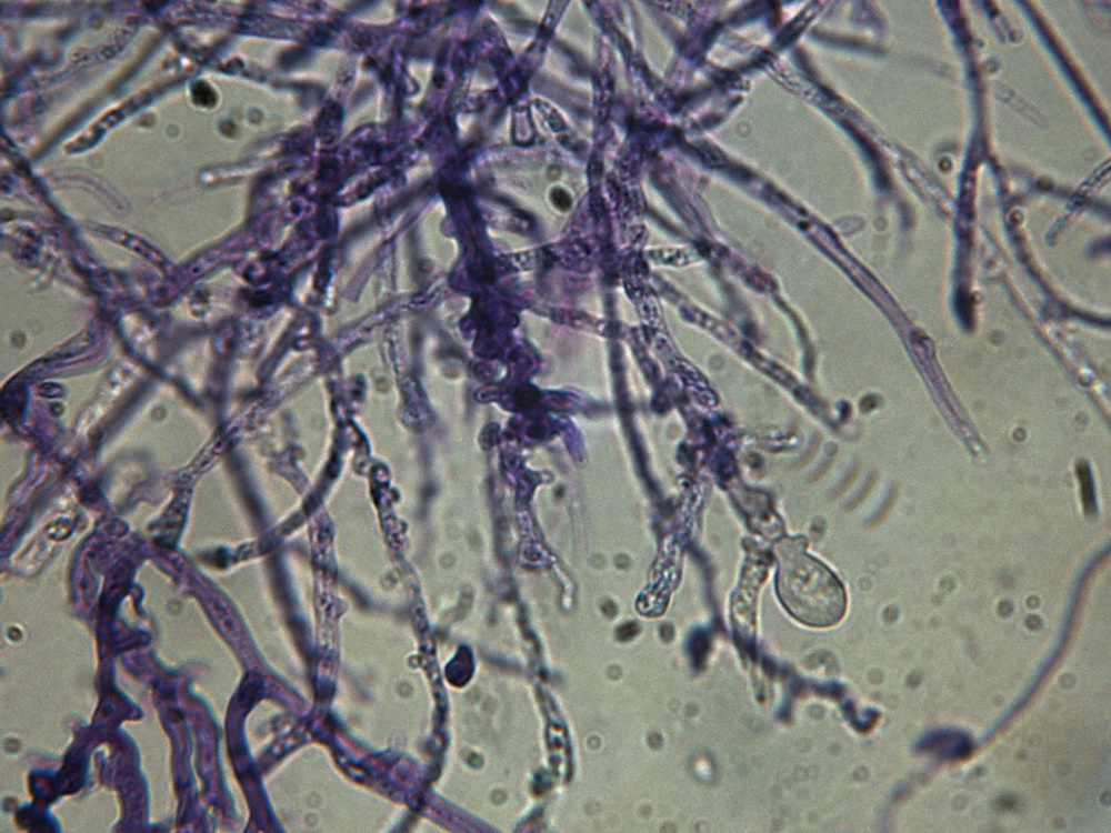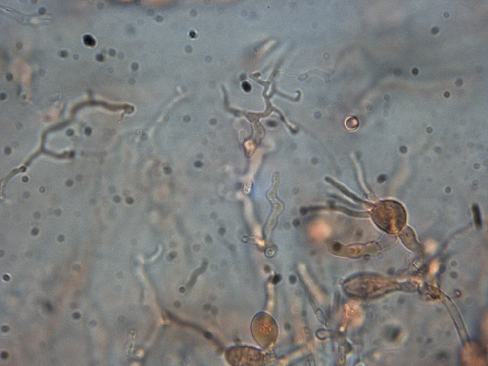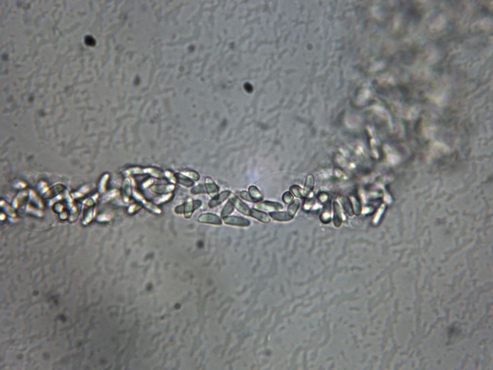 Sporen kamen im Quetschpräparat aus der bauchigen Basis kettenförmig.