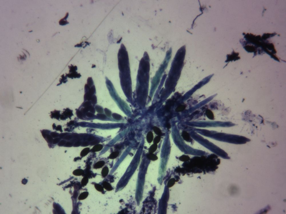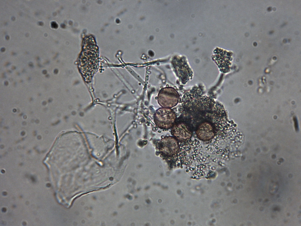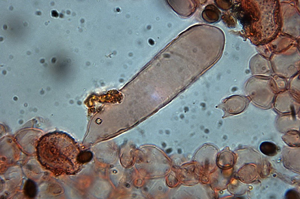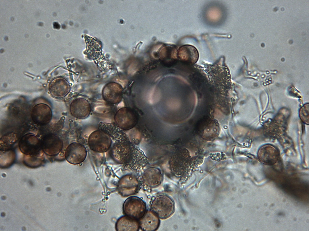 Die Sporen waren alle in diesem zylinerähnlichen Sack ohne Asci!