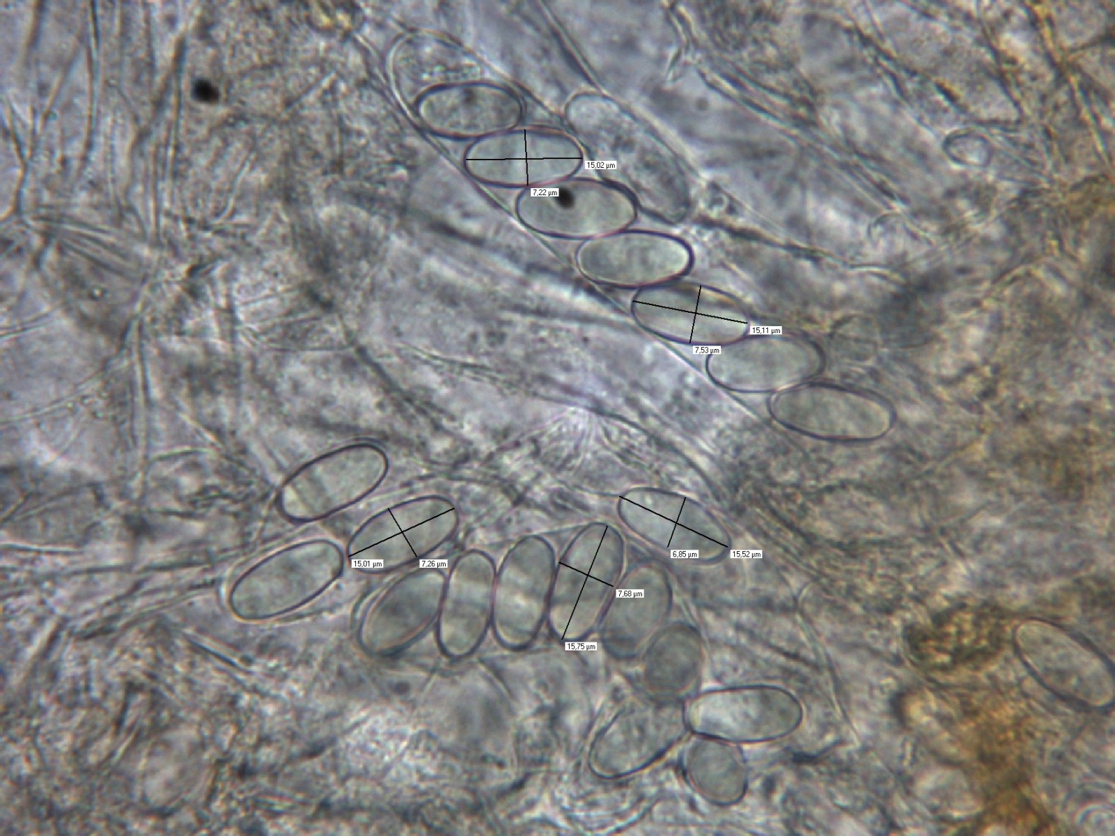 Sporen: 15 - 15,7 (-17) x 6,8 - 8 µm, Sp.+/- glatt, keine freien Sporen!