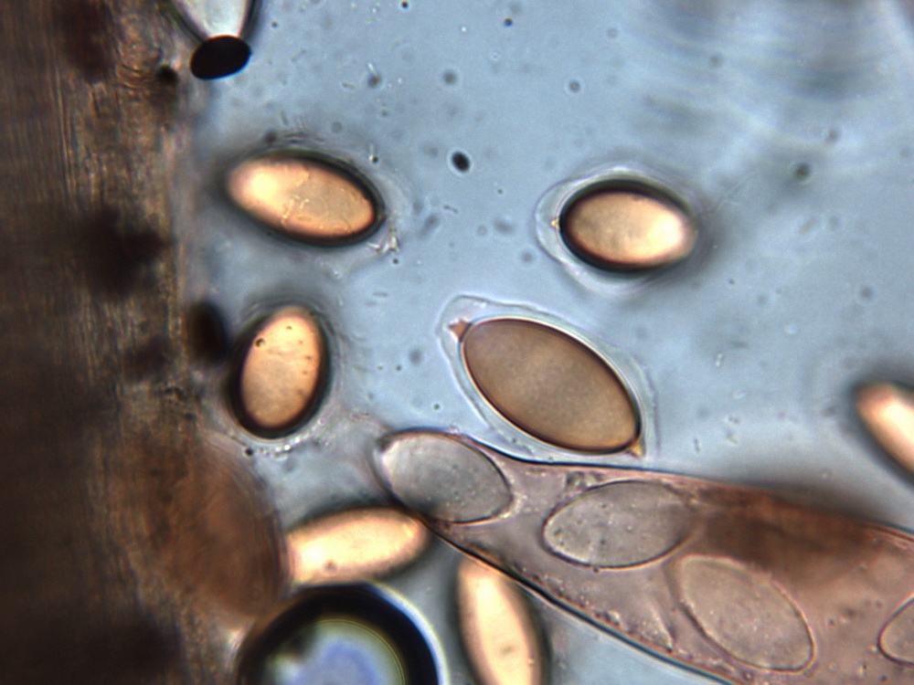 Sporen: 8,7 - 10,5 x 5,4 - 6,3 µm, in Aufsicht breiter als im Profil!