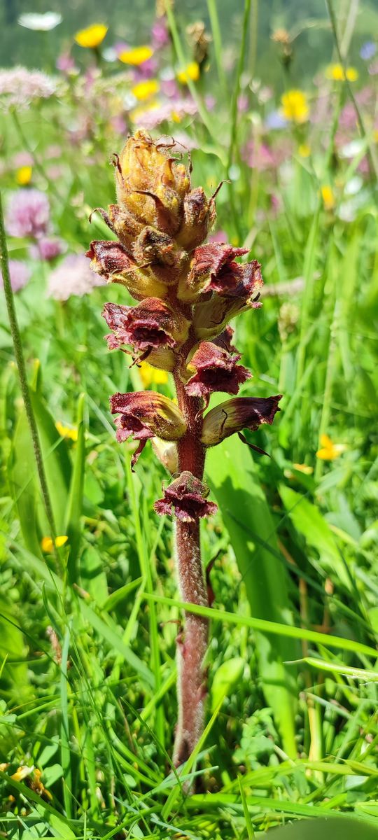 Das Schwarze Kohlröschen, oder das Gemeine Kohlröschen, Nigritella nigra subsp. rhellicani, Gymnadenia rhellicani, je nach Vorliebe der Benamsung: