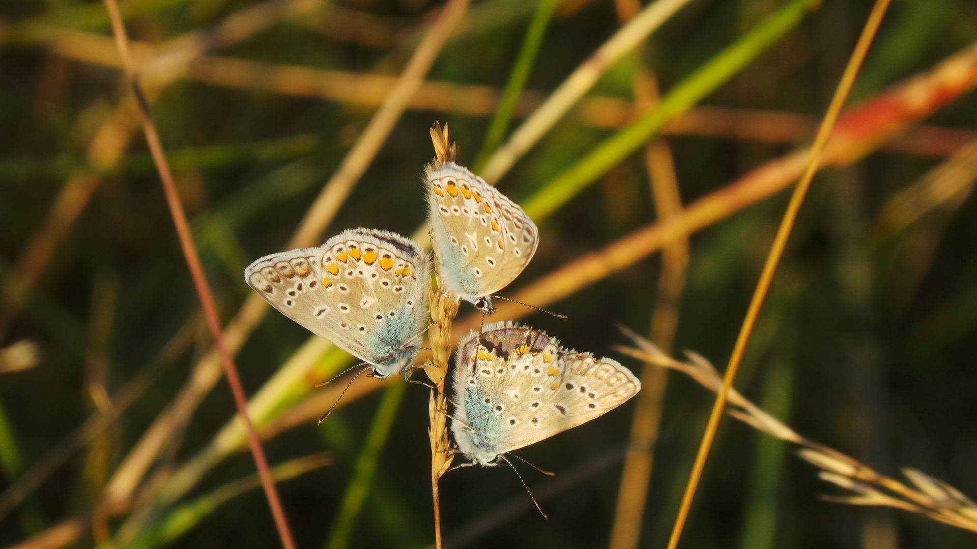 Als was kann man die drei auf dem Grashalm denn ansprechen? Hauhechelbläulinge ? Oder sind es himmelblaue oder Esparsettenbläulinge?