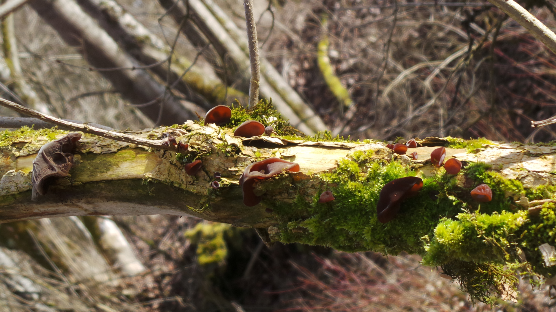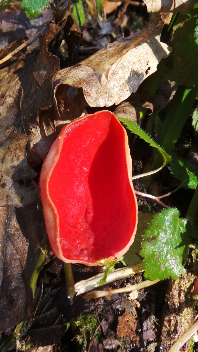 Interessant auch: Nach dem, was man auf deinen Bildern vom Fundort, von der Umgebung und Ökologie sehen kann, erinnert mich das total an den einzigen Fundort dieser Art (Sarcoscypha coccinea), die ich kenne. Ist ganz woanders, sieht aber sehr ählnich aus. Der Scharlachrote scheint in seinen ökologischen Ansprüchen jedenfalls noch etwas wählerischer zu sein als der Österreicher - der Scharlachrote ist ja auch die deutlich seltenere Art.