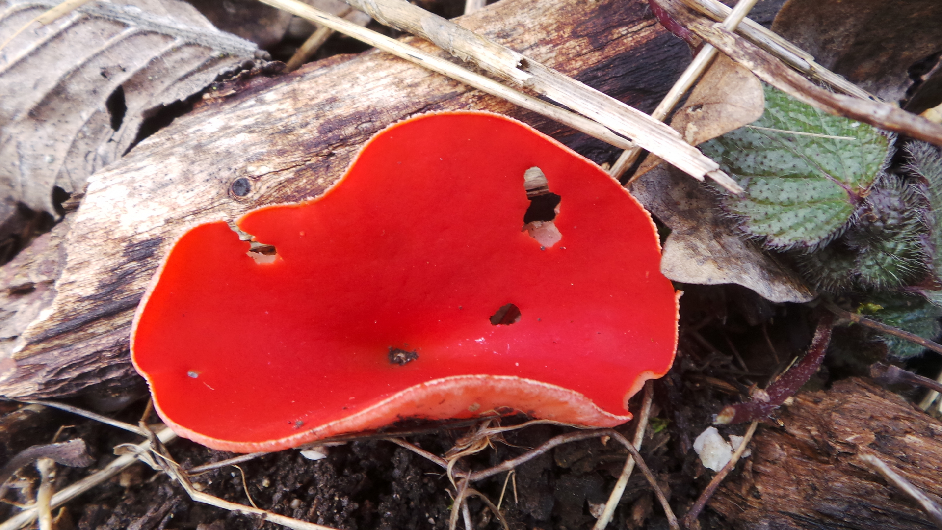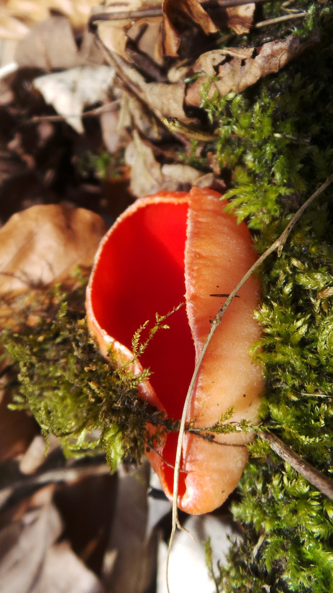 Aber da standen halt so Schilder herum, die auf den zinnoberroten Kelchbecherling hinwiesen.