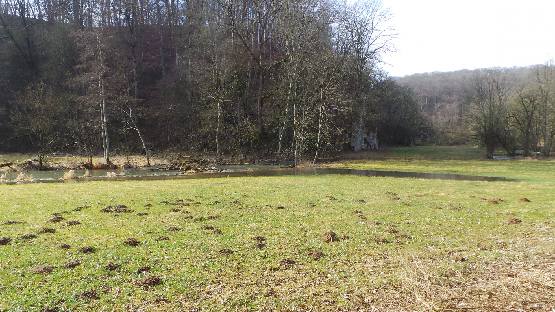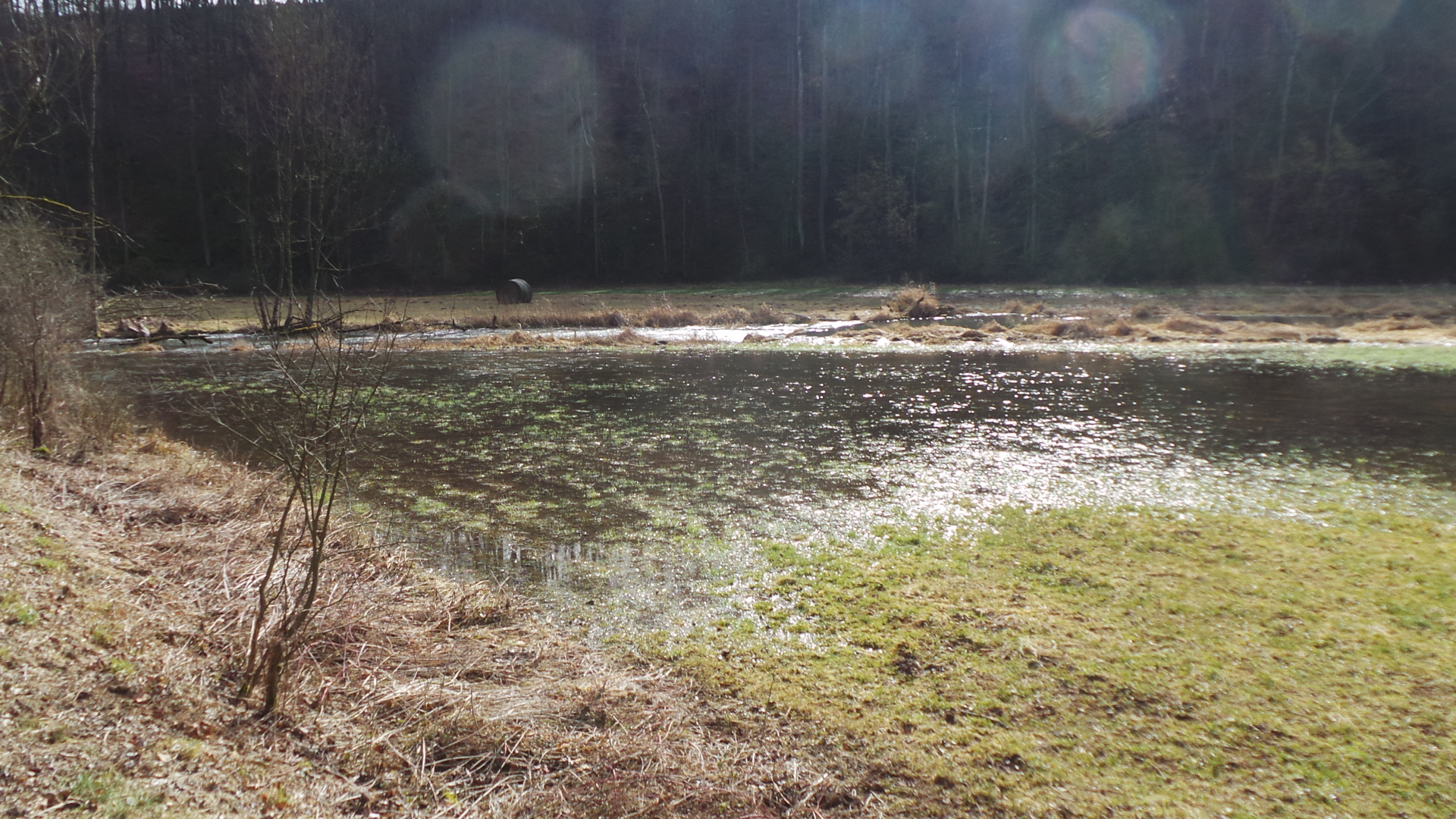 Die Wasserführung des Flüsschens war recht üppig, so dass teilweise die Wiesen überflutet wurden: