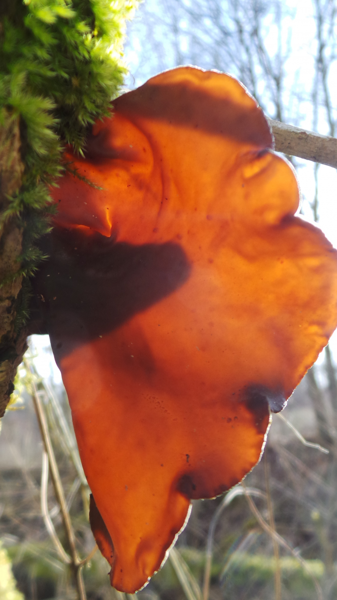 Mit hoher Wahrscheinlichkeit ist es dann (wenn Ast von einem Laubbaum) Tremella mesenterica (agg.), denn Tremella aurantia ist ein Parasit von Stereum hirsutum und bildet die Fruchtkörper normalerweise direkt auf den Fruchtkörpern des Wirtspilzes. Tremella mesenterica (agg.) ist ein Parasit auf Peniophora - Arten, und sitzt oft nicht direkt auf deren Fruchtkörpern.LG, Pablo.
