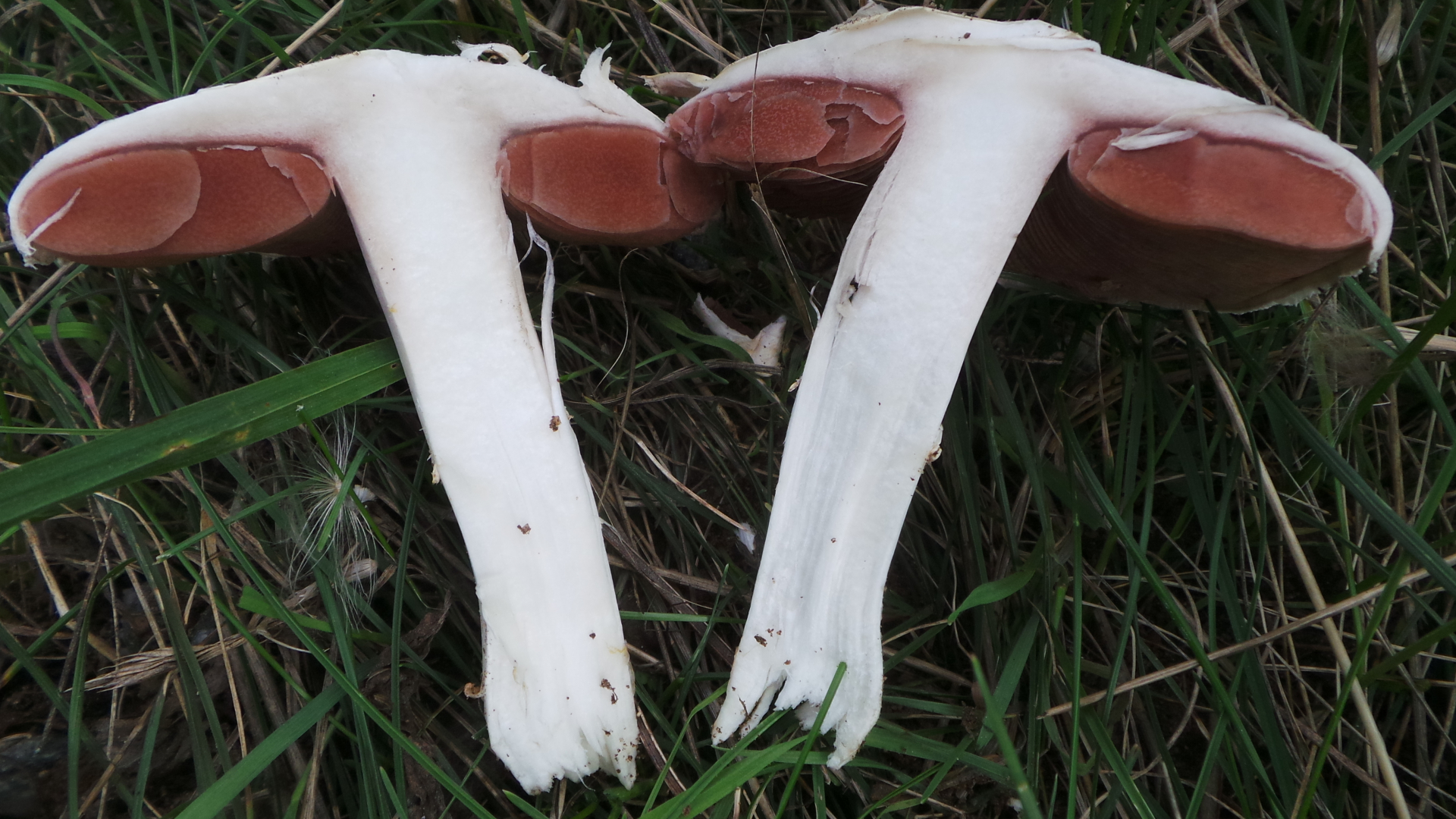 Ich behaupte einmal, das sind wohlscheckende Champis, so rochen sie zumindest, ohne verdächtige Note nach Karbol, aber weil sie direkt am Hundescheiß- und Brunzrand standen habe ich sie nicht mitgenommen: