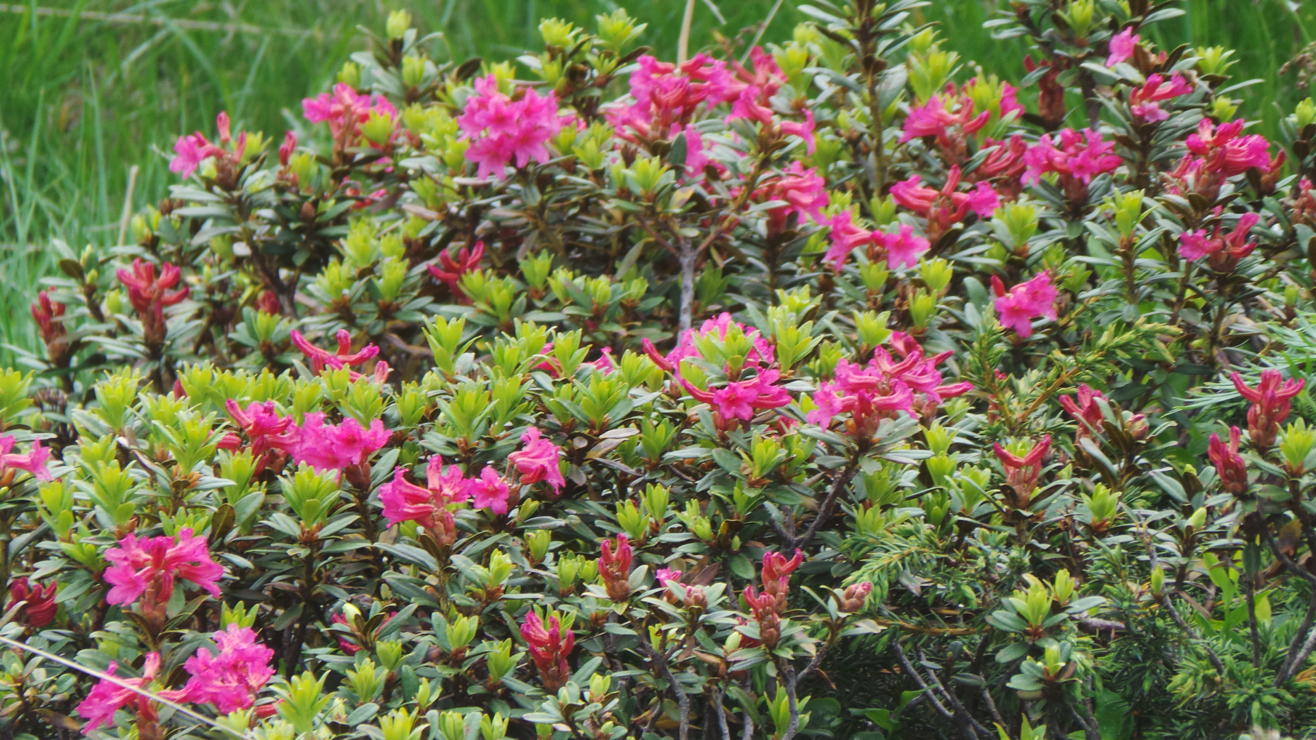 Ab 1600 hm und darüber gaben sich die Alpenrosen ein Stell-Dich-ein (Rhododendron ferrugineum):