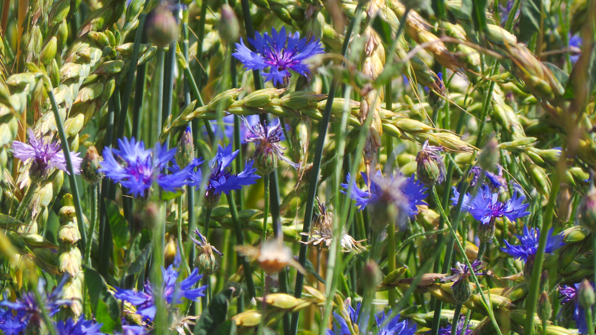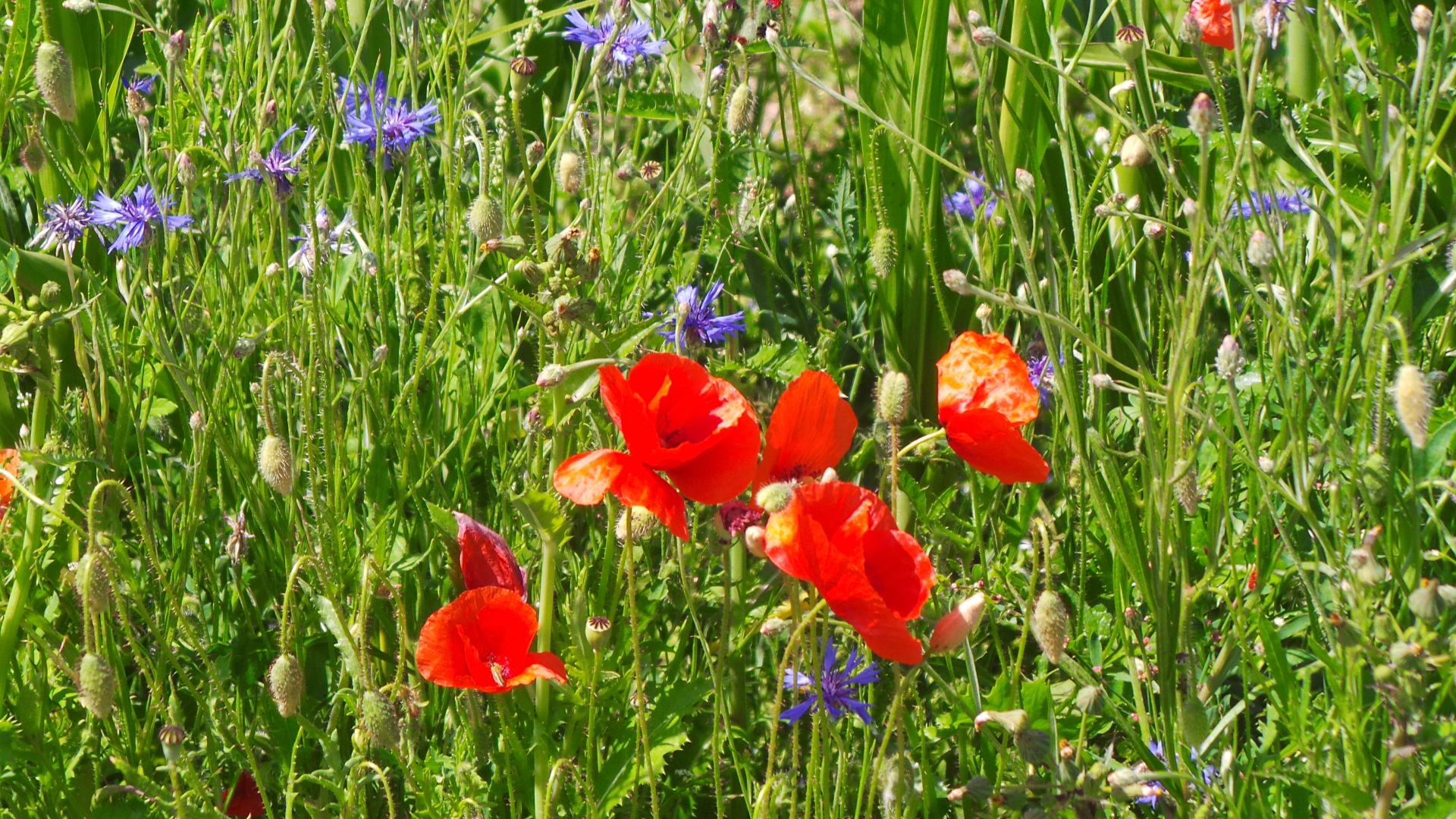 Bevor es in den Wald ging sah ich ein farbenfrohes Getreidefeld, welches wohl nicht mit Glyphosat bedacht wurde: