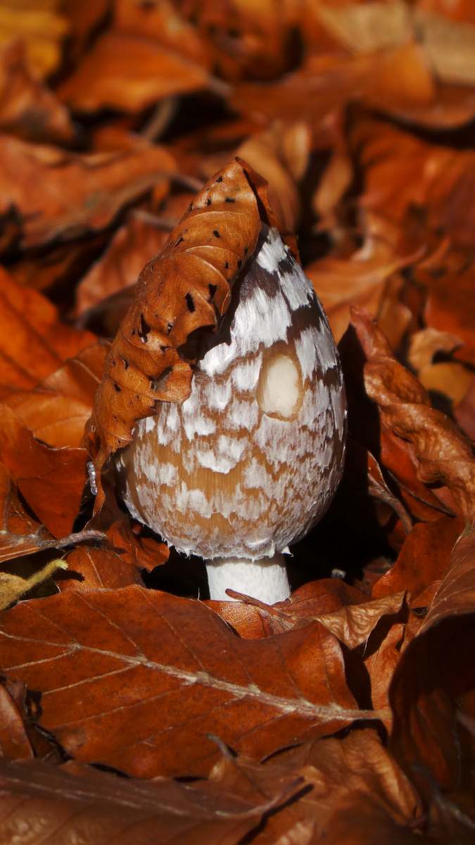 die "normalen" roten Fliegenpilze ein paar Zentimeter weiter sahen in allen Stadien, jung wie alt, so aus, also rot: