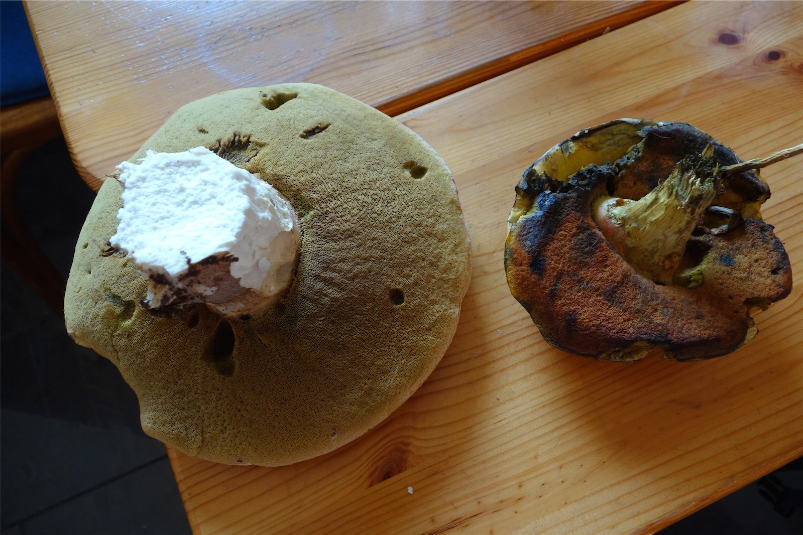 ich habe heute in Kappl, Tirol im Nadelwald einen Pilz gesammelt. Ich bin mir ziemlich sicher, dass es sich um einen Semmelporling handelt, aber hätte gerne noch Bestätigung. Gibt es Tipps zur Zubereitung? Passt er in Pilzpfanne zu Pfifferlingen und Steinpilzen? Oder lieber einzeln zubereiten wegen Bitterkeit?