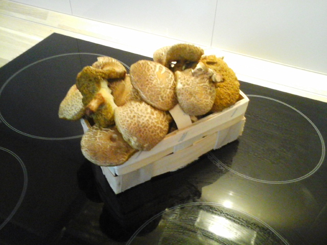 Die Pilze haben eine gewölbte und rissige Kappe, einen Schwamm (grünlich braun, nach dem Schneiden zunehmend braun), der Schnitt ist an Stiel violett gefärbt und die Pilze sind unter dem Hut hell-gelb und am Stil braun und leicht rötlich. Der Fundort ist nahe einem alten Steinbruch und der Boden ist sicher mineralisch, sicher werden die Felder gekalkt und gedüngt.