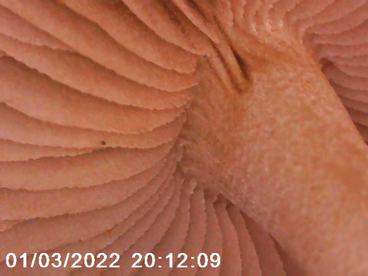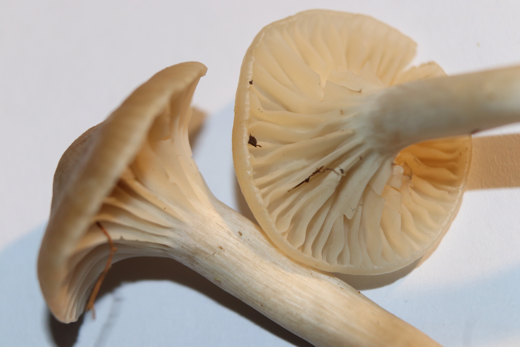 Lamellen jung gräulich-weiß, später hellgrau, schmal angewachsen/angeheftet, untermischt, leicht gesägt.