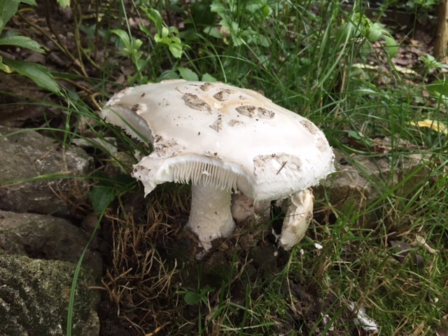 bei uns wuchern noch einige Pilze, die ich nicht kenne. Könntet ihr mir wohl sagen, um was es sich dabei handelt, damit ich wegen Kleinkinds entweder unbesorgt sein oder doch noch einmal sehr achtsam durch den Garten gehen muss?