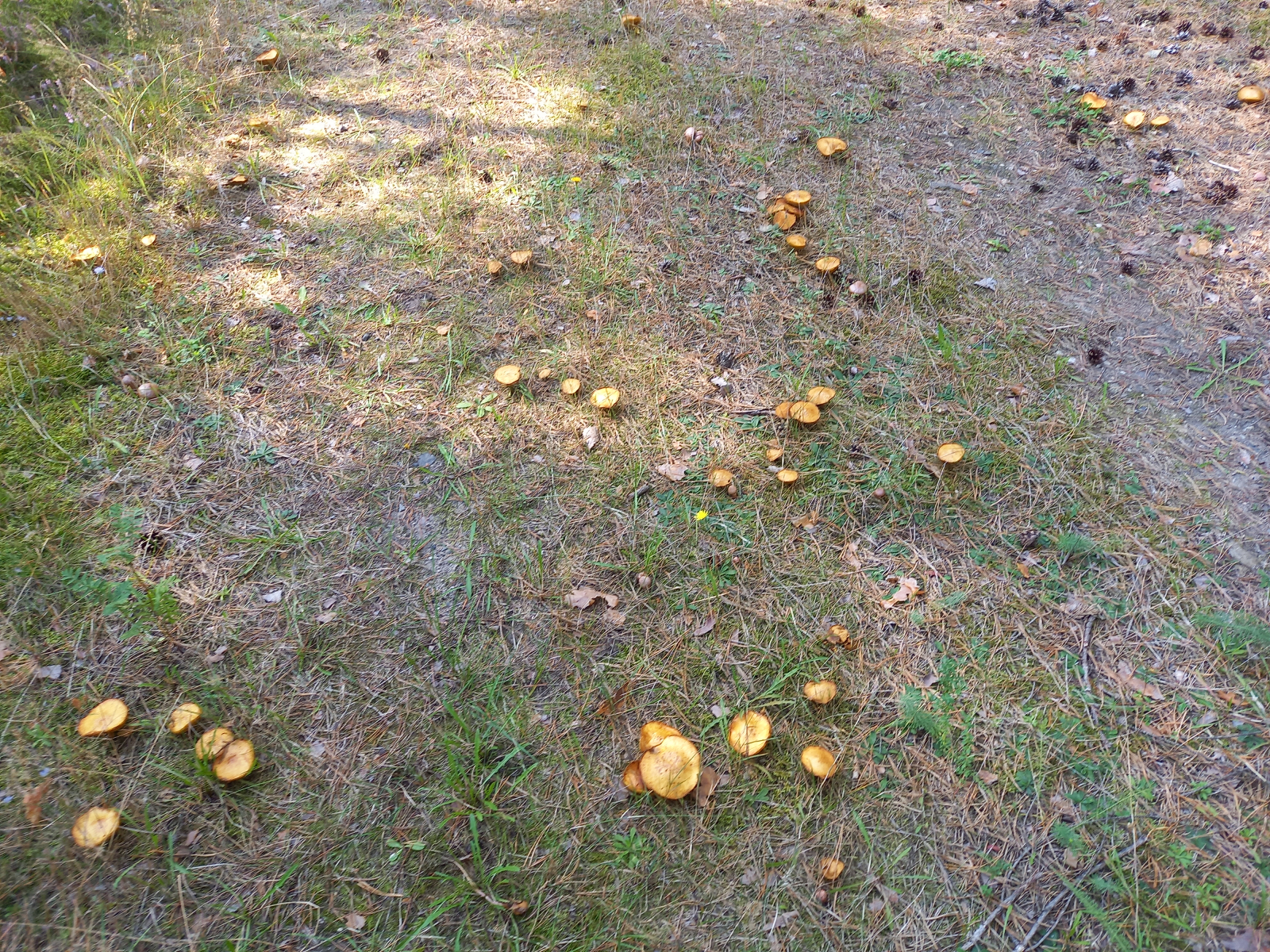 Bemerkenswert war ein Weg der mit Goldröhrlingen übersäät gewesen ist. Butterpilze gab es auch einige. Doch bei den ausreichend gefunden Rotkappen, Birkenpilzen und Steinpilzen, ließ ich sie einfach stehen.