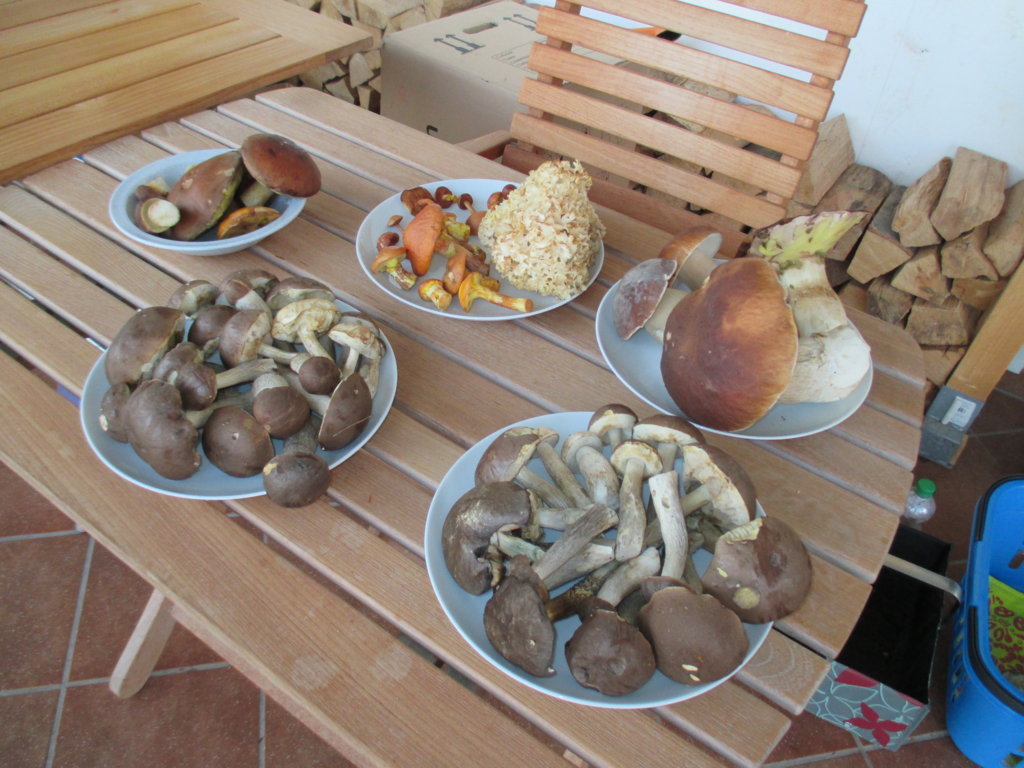 Wir dachten.......naja.......finden wir etwas, dann isses gut. Und wenn nicht, dann isses auch gut. Der Madenbefall bei den spangrünen Kiefernreizkern war gleich null. Juhu. Ich mag sie als Bratpilz sehr gerne haben. Mein Mann ist wieder auf Steinis gegangen. Ich mehr auf Fotosession. Gefunden haben wir: Spangrüne Kiefernreizker, Steinis, Maronen, Kuhmäuler und einige andere Erstfunde. Ich bin ganz stolz auf mich. Dann wollen wir mal..........