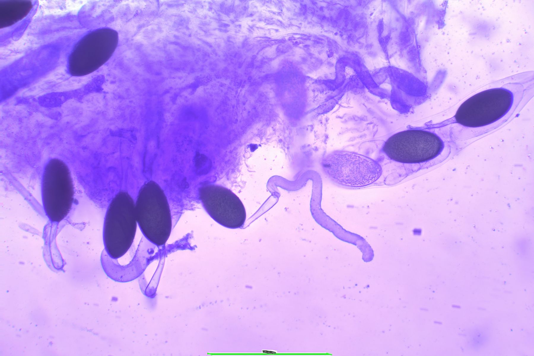 Freie Sporen hatte es keine, die Pedicelle nur erahnbar, dafür mal mit deutlicher DeBarry-Bubble