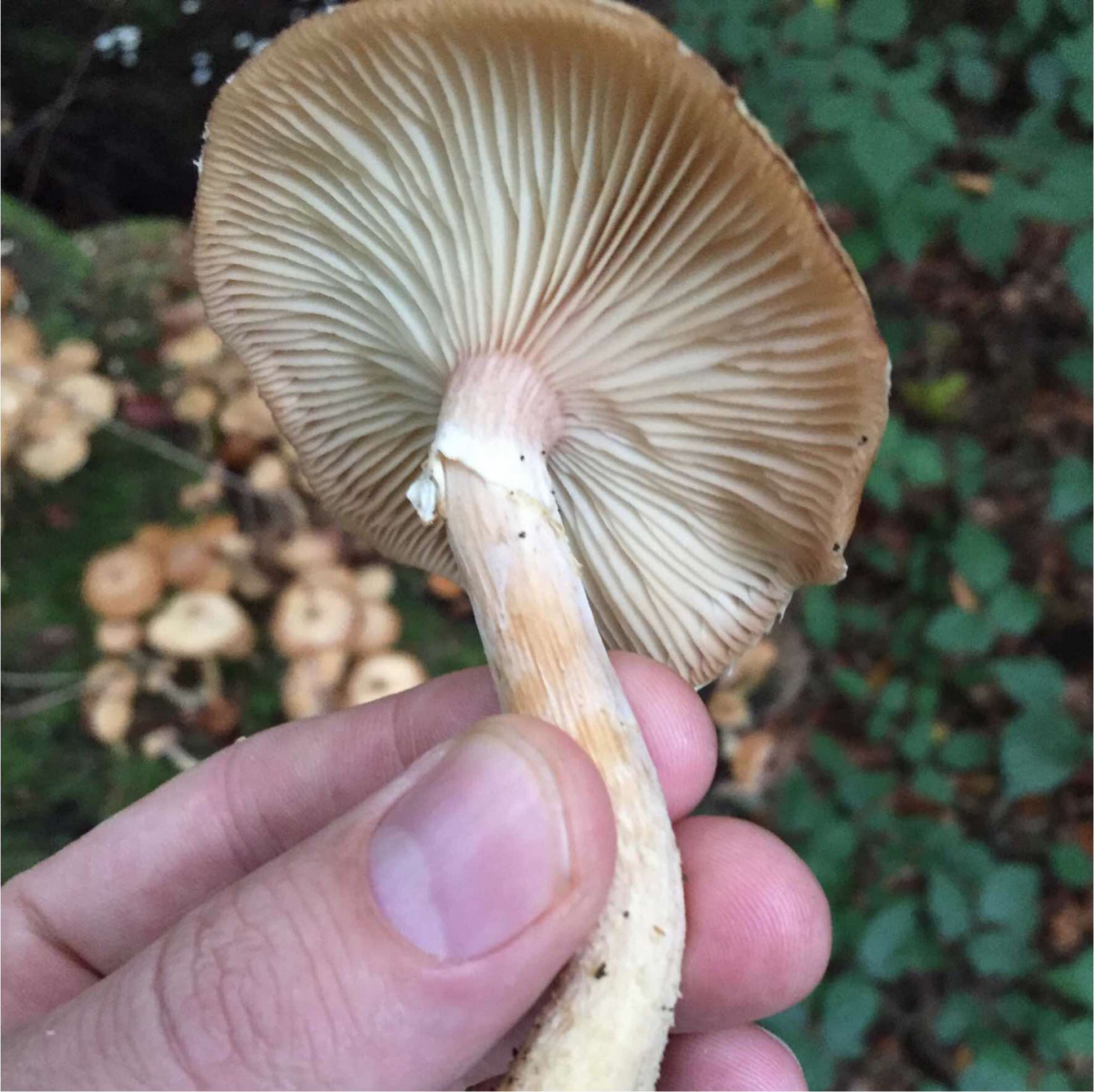 Ich bin neu hier im Forum. Ich habe diese Pilze in einem Mischwald auf einem Baumstrunk gefunden. Sind dies fleischfarbene Hallimasche? Kann noch nicht ganz ausschliessen: (grünblättriger) Schwefelkopf, Gifthäubchen oder Stockschwämmchen. Kann man das anhand der schlechten Bildqualität überhaupt bestimmen?