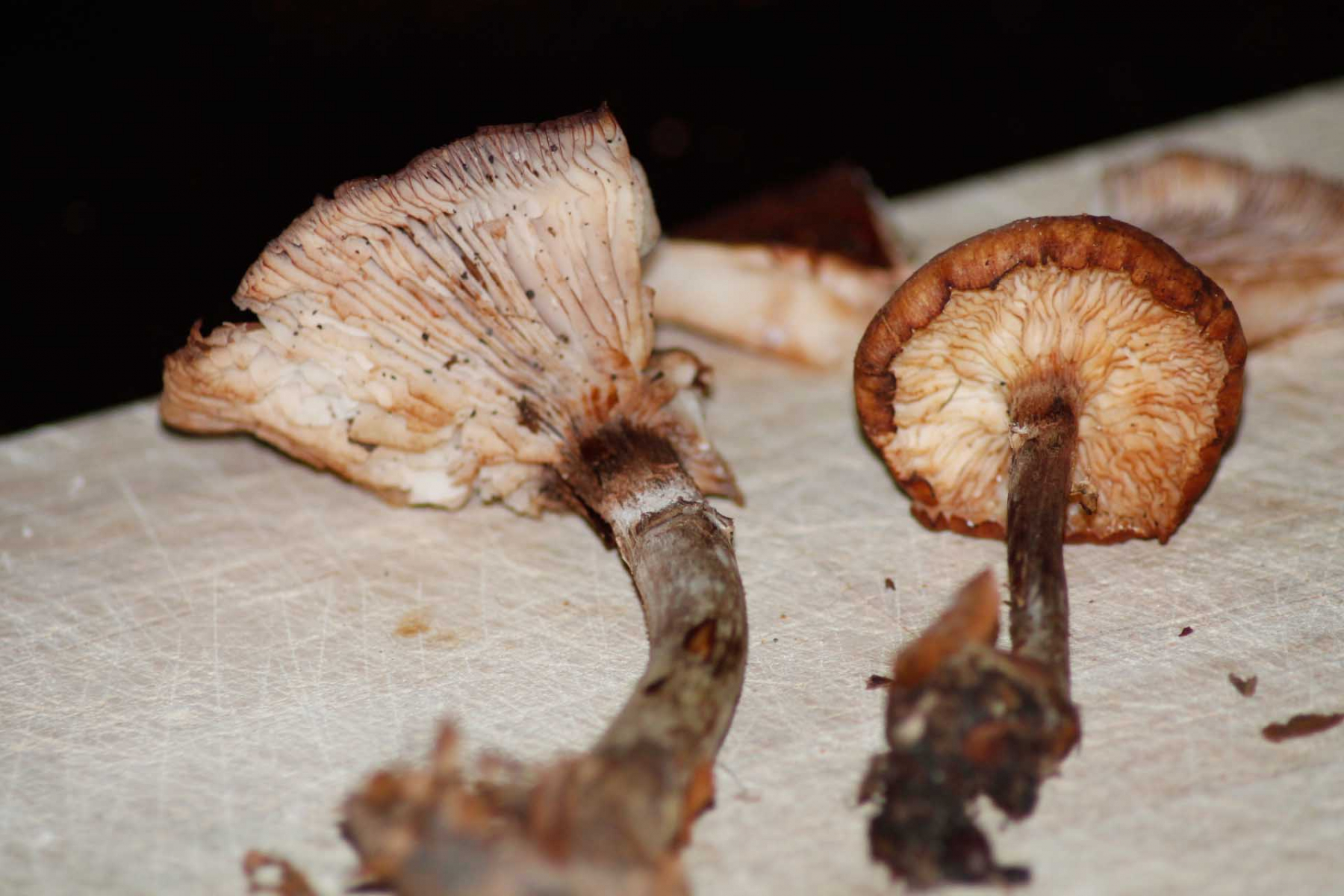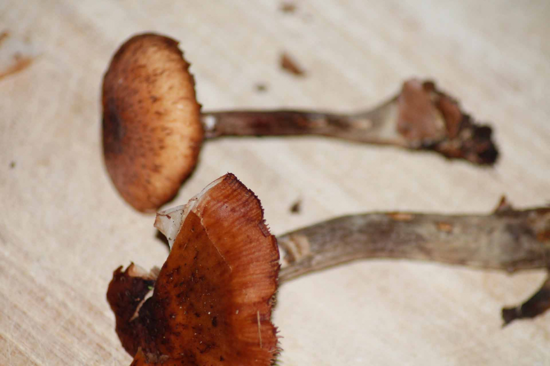 In einem anderen Wald sah ich ähnliche Pilze aber nicht so in Büscheln, die jungen Pilze waren nicht so knollig und mit dünnem Stiel (Bild 6-7). Das Sporenpulver habe ich noch nicht untersucht. Dennoch habe ich das Gefühl sehr oft Pilze zu sehen die älteren Hallimasch ähneln ( brauner Schirm mit Punkten und innen dunkler und bin dann immer verunsichert. Hat jemand Merkmale durch die ich Hallimasch von anderen abgrenzen kann?