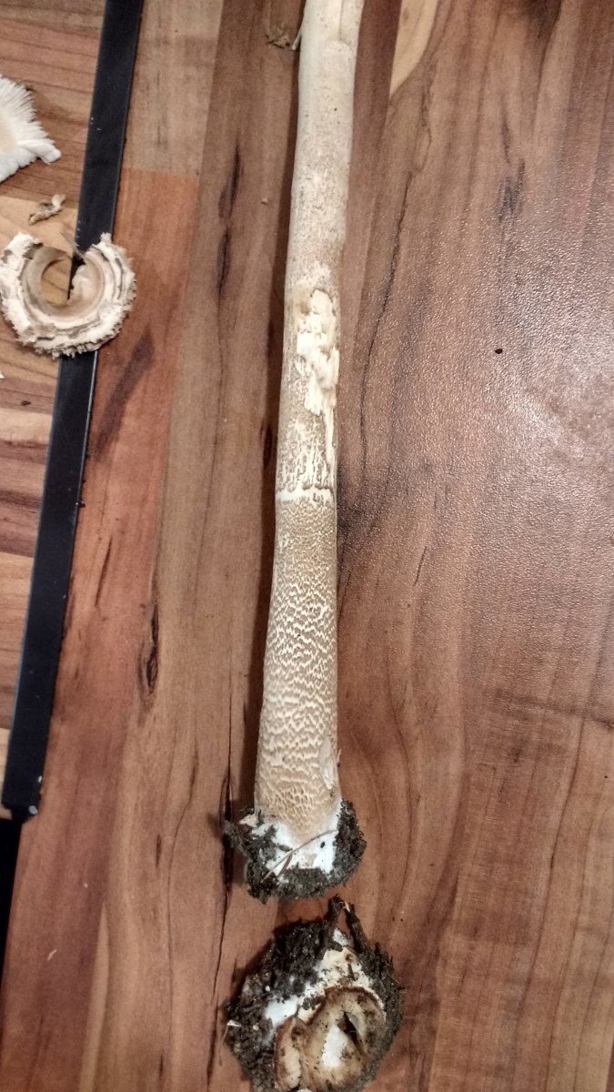 Den genatterten Stiel habe ich oben noch nicht untergebracht, weil ich nicht herausgefunden habe, ob alle Riesenschirmlinge einen genatterten Stiel haben oder nur der Parasol(?)