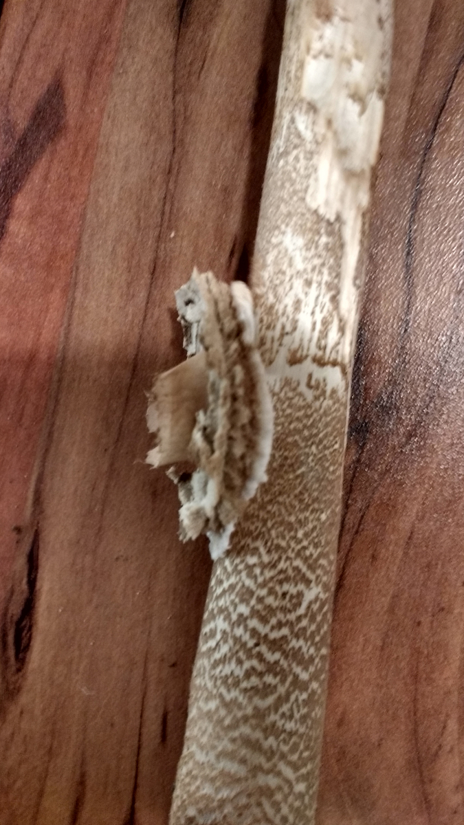 Habe ihn mal abgeschnitten und mitgenommen. Einerseits schien er mir beim Anfassen schon noch appetitlich, andererseits brachen beim Hochheben schon Teile ab bzw. fielen einfach weg.