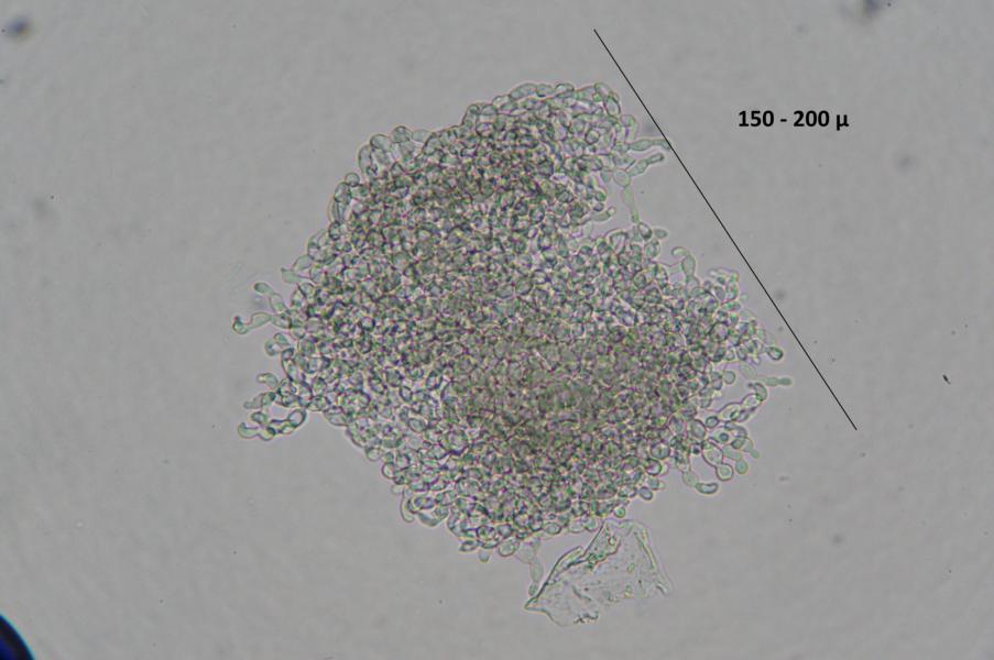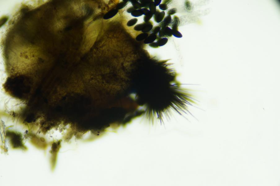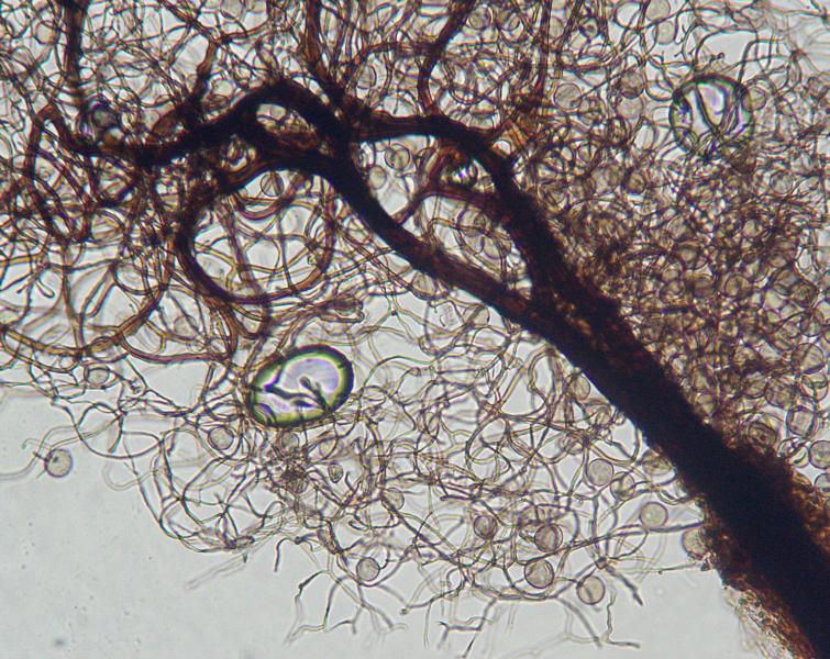 - Fruchtkörper: 800 x 550 µ, komplett von Haaren umschlossen