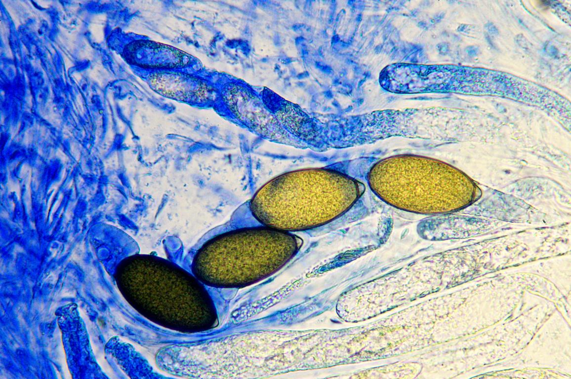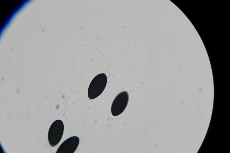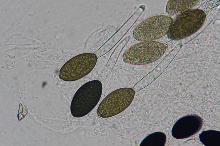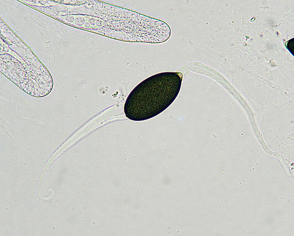 - Sporen: 36 - 40 x 18 - 20 µ, reife Sporen komplett schwarz