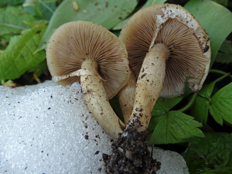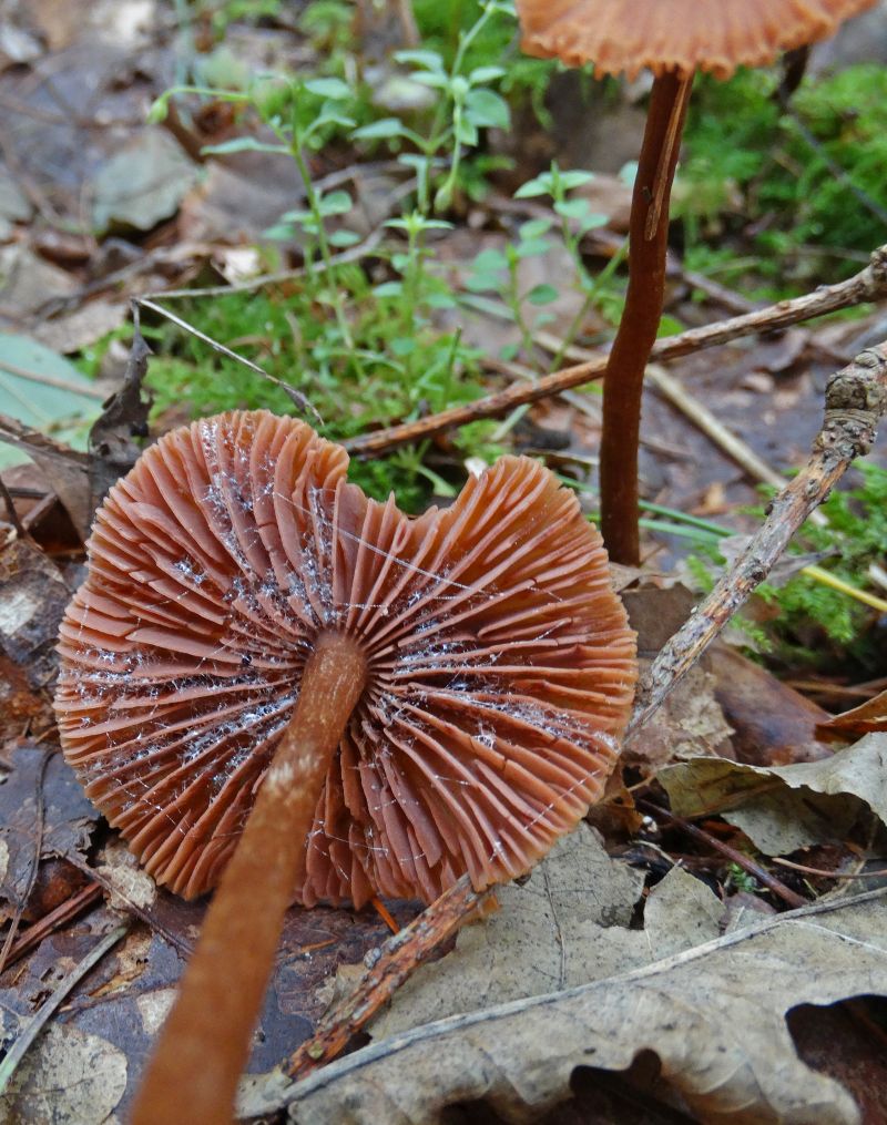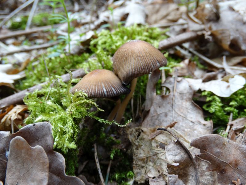 1. Zwei Helmlinge. Mit solchen farbigen Schirm habe ich noch nie gesehen.