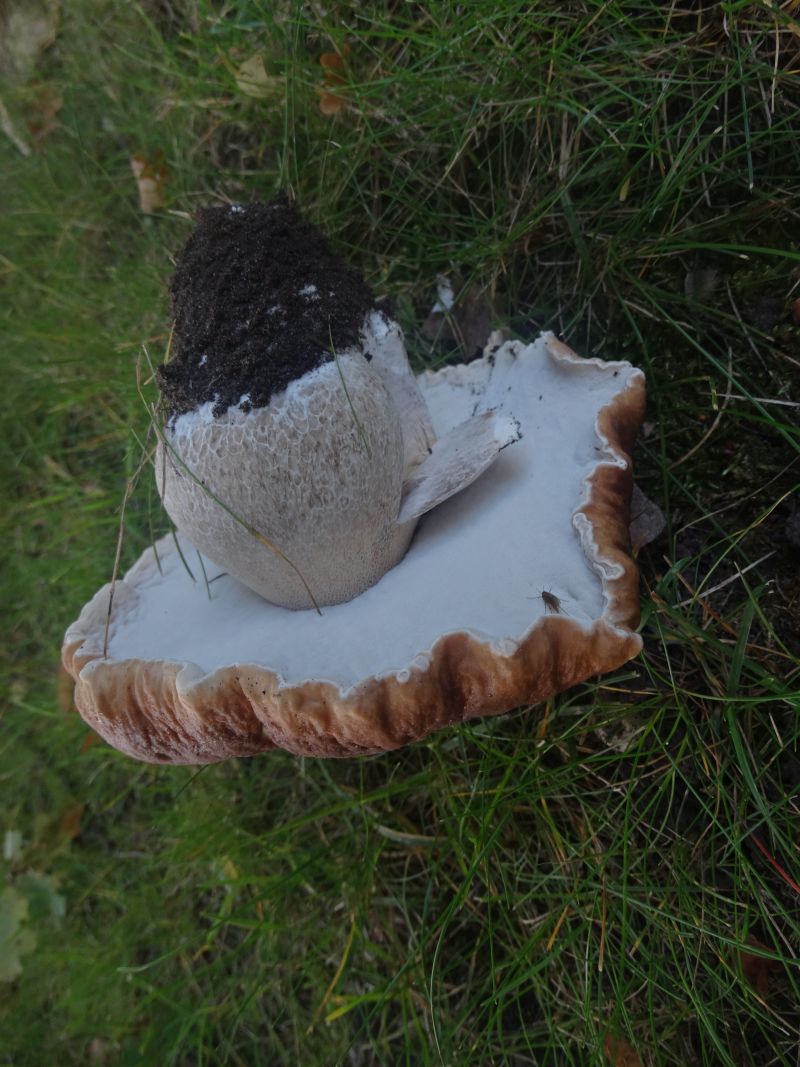 1. Braunschuppiger Riesen Champignon / Egerling (Agaricus augustus). Gute 25 cm Durchmesser.