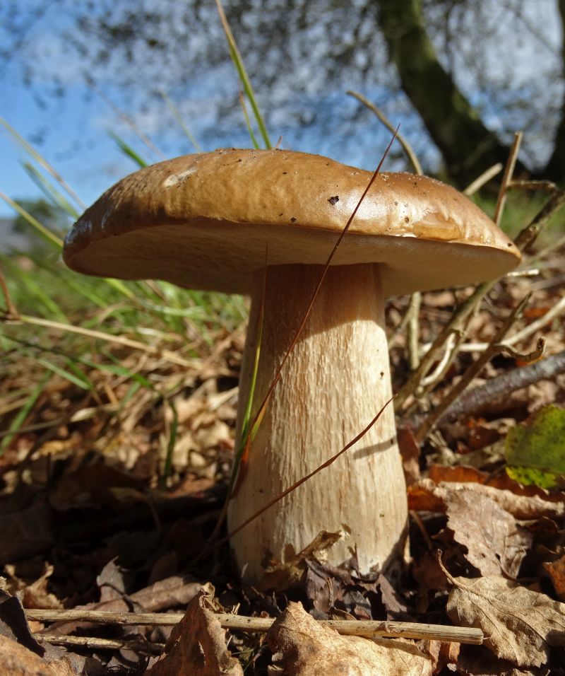 4. Der Röhrling sah so aus, also wäre er schon am Ufer, aber zuhause haben wir gesehen, dass er ziemlich gelb war, unter dem Hut und am Stiel. Was könnte das sein? Auch ein Steinpilz, aber welcher?