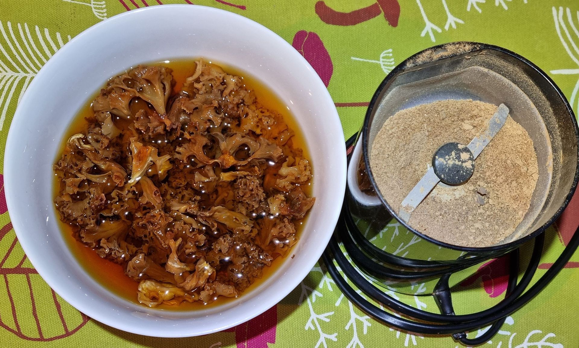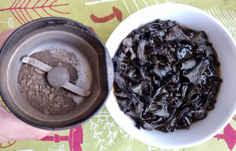 Dabei weiche ich etwas mehr als die Hälfte der Pilze ein und verarbeite den Rest zum Pilzpulver.