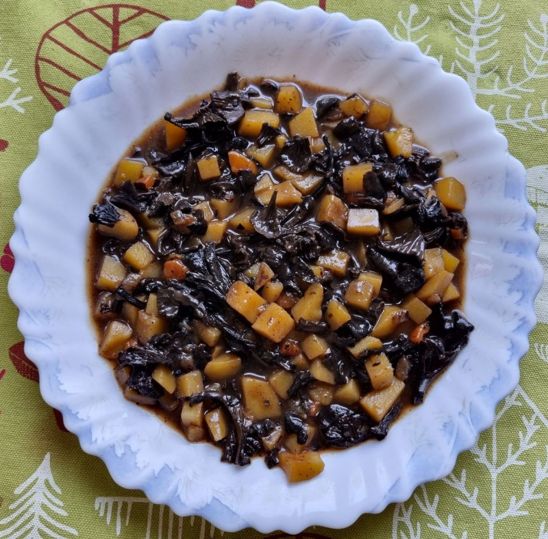 - ca 20-25g Trockenpilze (teils eingeweicht, teils als Pilzpulver)