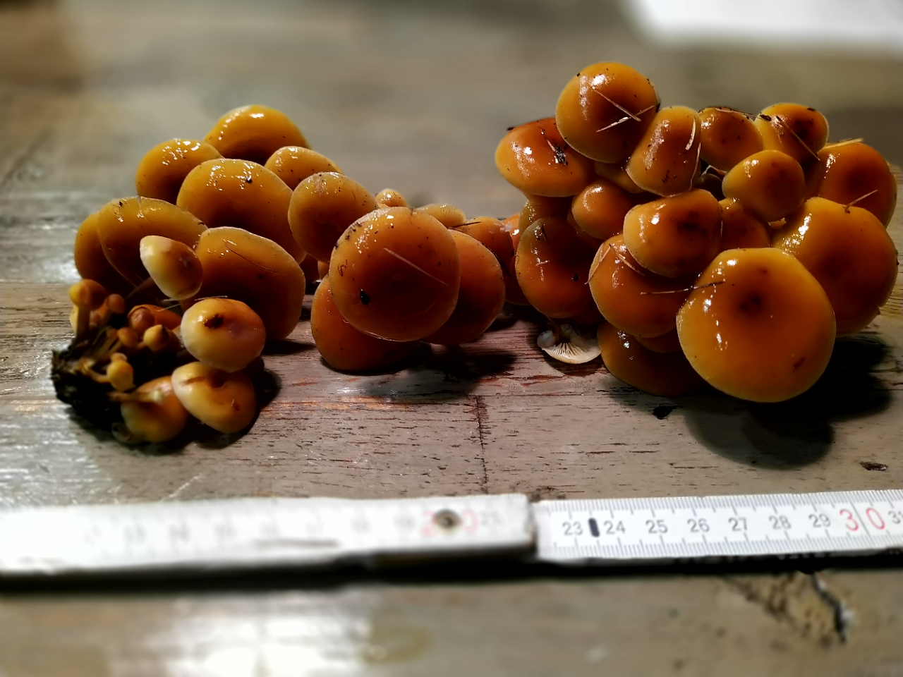 ich denke ich habe heute Stockschwämmchen gefunden. Habe einige Foreneinträge zum Thema Stockschwämmchen vs. Gifthäuptling gefunden und beschlossen sie auf keinen Fall zu verzehren. Dennoch würde ich im Bestimmen gern sicherer werden und würde mich daher sehr freuen, wenn einige Profis und die, die es werden wollen ihre Meinung kundtun.