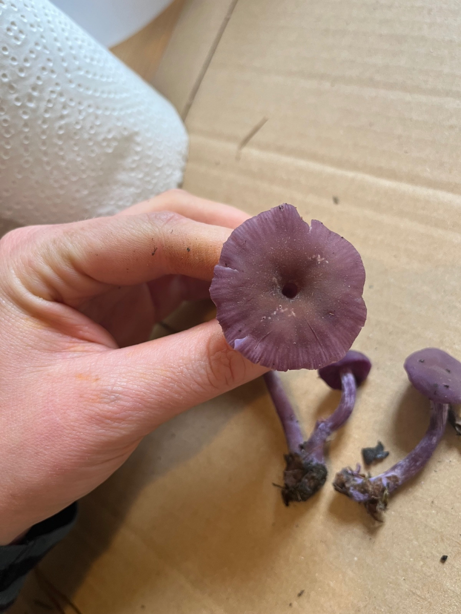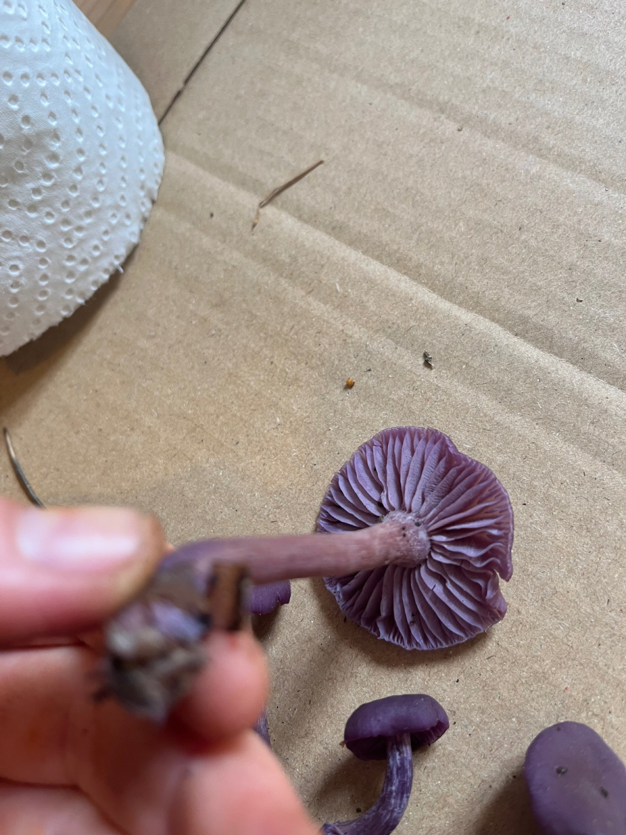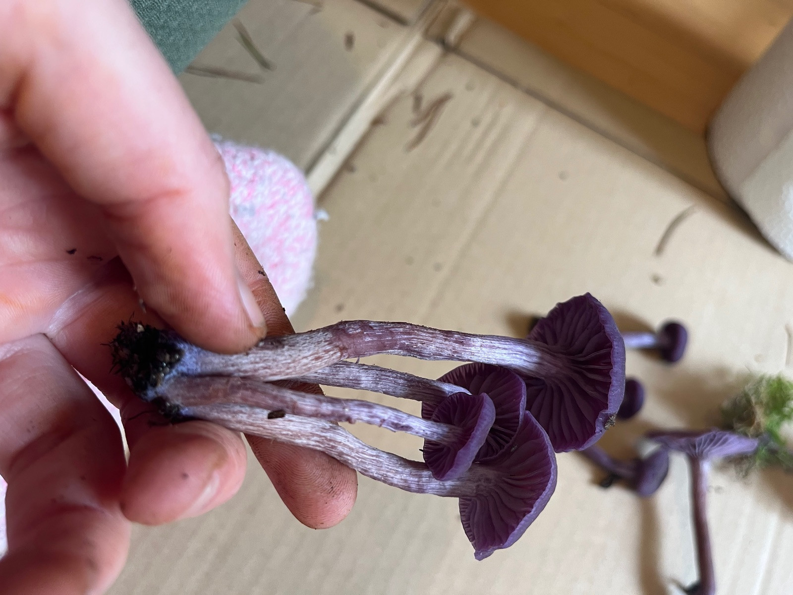 In unsere Region (Sachsen Anhalt ) ist auch alles voll mit diesem Pilz , wir vermuten auch violetten Rötelritterling aber sind uns nicht 100 Prozent sicher, da der Lilafarbene Rötelritterling oder auch der Purpurfleckende Klumpfuß naheliegend sein könnten. Den Geruch finden wir ebenfalls sehr fruchtig , so nach orange und extrem intensiv. Im Alter sind die Hüte kaum mehr lila eher hell bis bräunlich. Bei uns waren sie in hauptsächlichen Laubwäldern vertreten und gut versteckt .