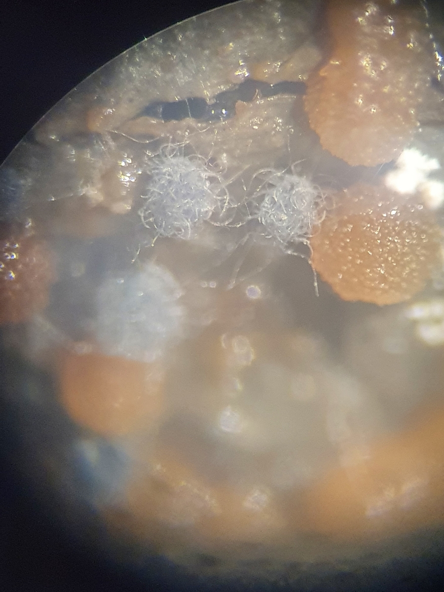 Tritt eigentlich die Verzweigung oder Kräuselung der Haare erst spät ein, denn ich habe mich immer sehr schwer getan, dieses Merkmal zu beurteilen - oder sind das Reifungsstörungen in der feuchten Kammer?