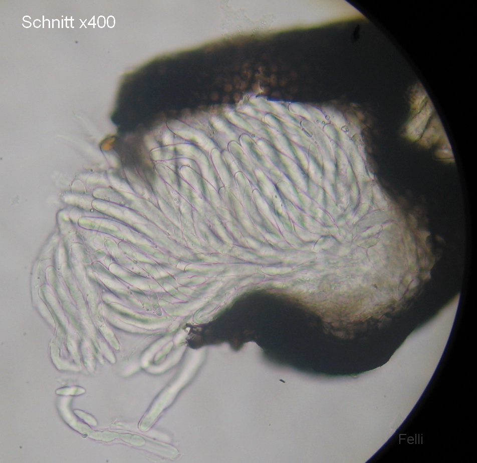 Interessant dazu ist noch, dass die Anzahl der voll ausgebildeten Sporen in den Asci zwischen 4-6-8 schwankte.