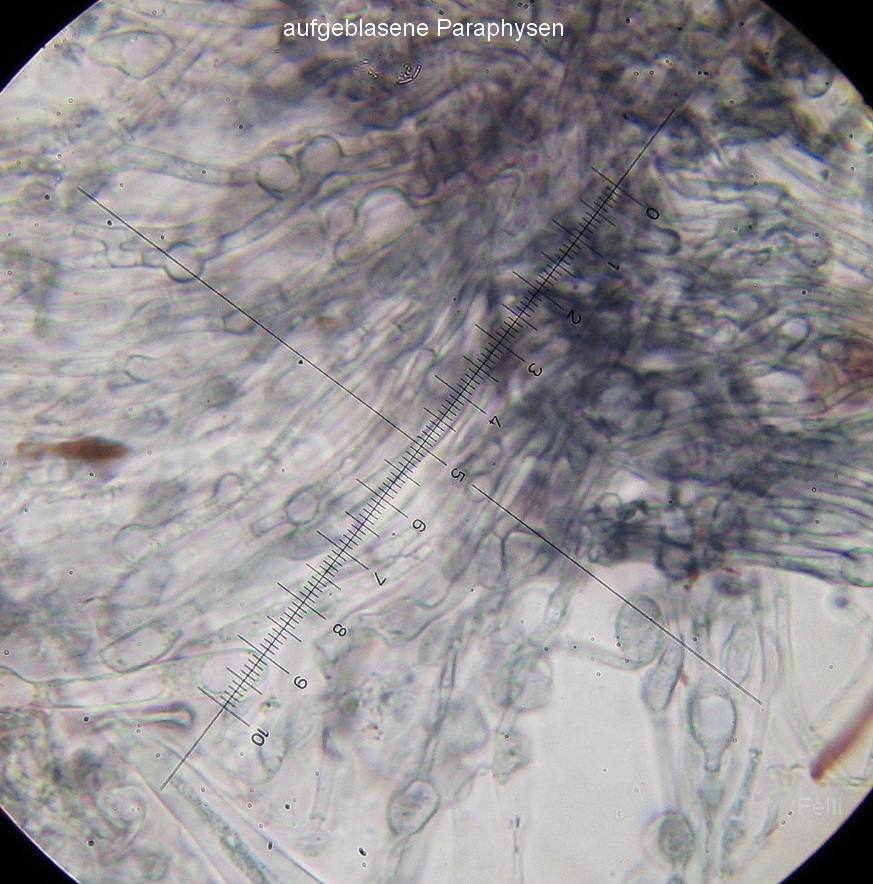 Bei deinem Fund seh ich schon mal keine gelben Guttulen in den Paraphysen und wichtig wären halt dann auch die großen Zellen im Excipulum/Medula-.