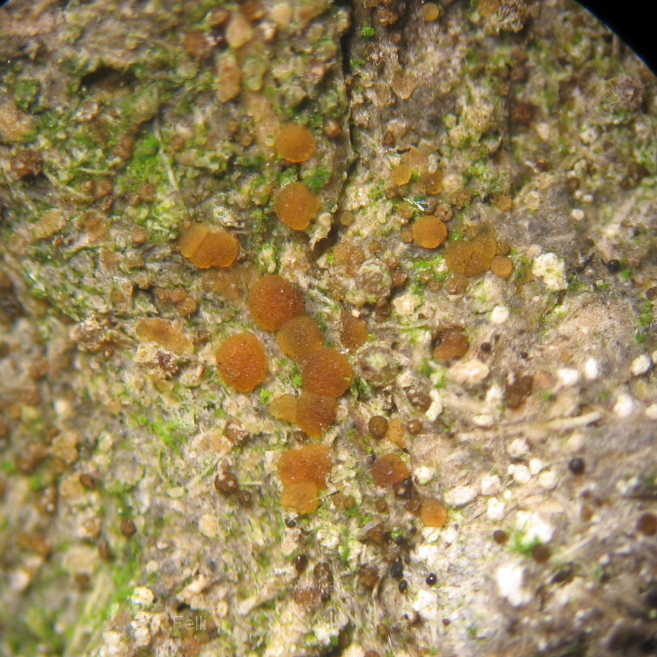 Octospora bryi-argentei sollte an Bryum argenteum wachsen, ein leicht kenntliches Moos.