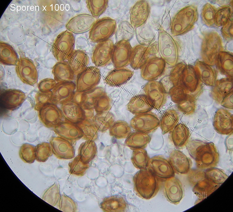Die Sporen sind recht groß, teilweise sogar bis 45µ, der Schnitt lag aber so um die 30µ
