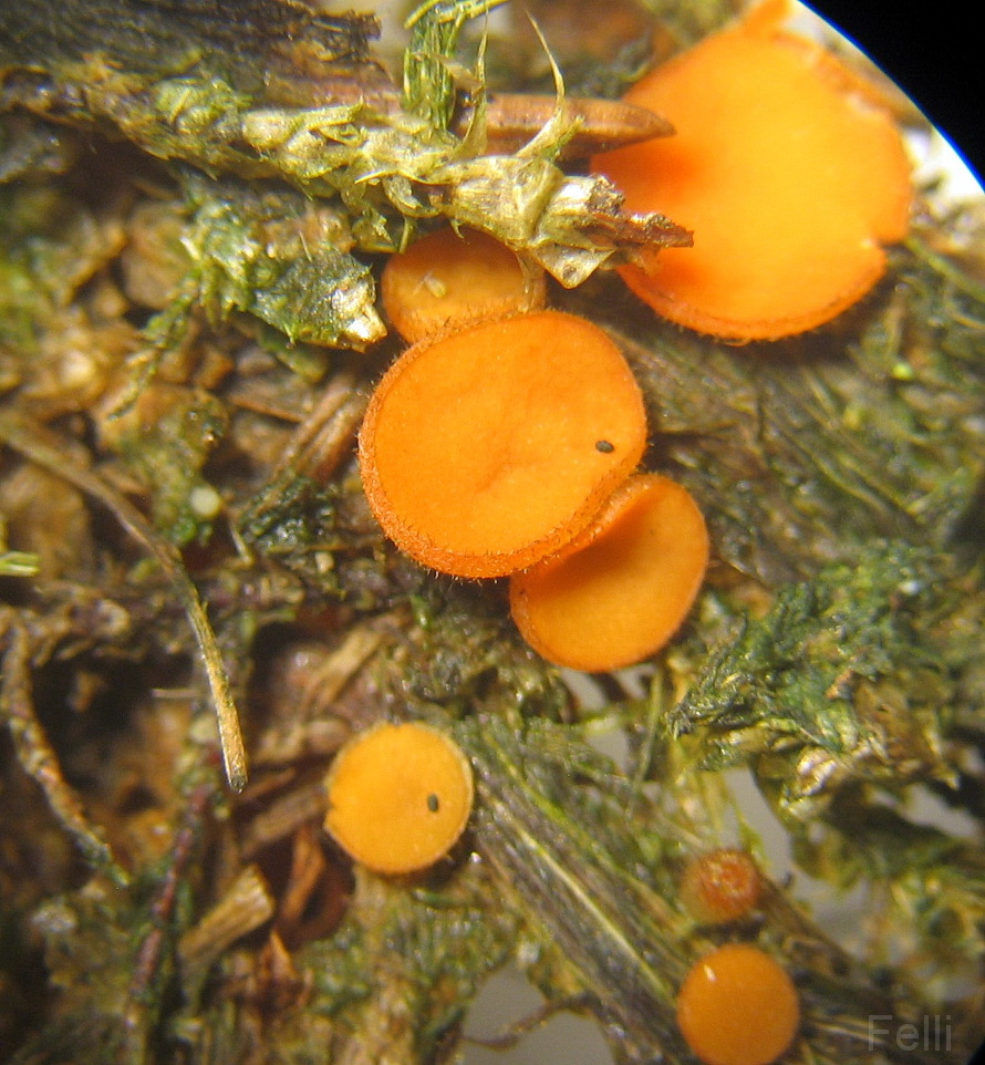 scutellinia-artigen, ca. 2-7mm großen Fruchtkörpern.