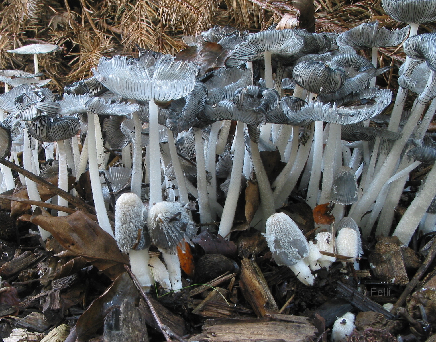 bei einem meiner letzten Spaziergänge kam mir diese große Tintlingsgruppe auf Holzhechsel am Wegesrand unter die die Augen.