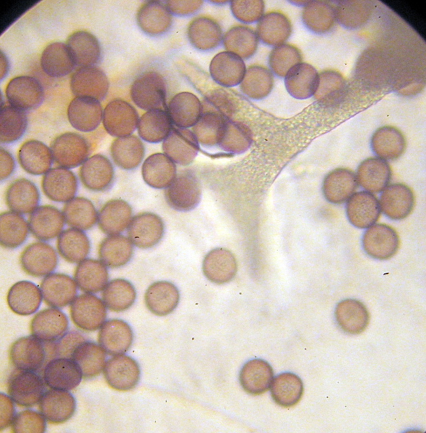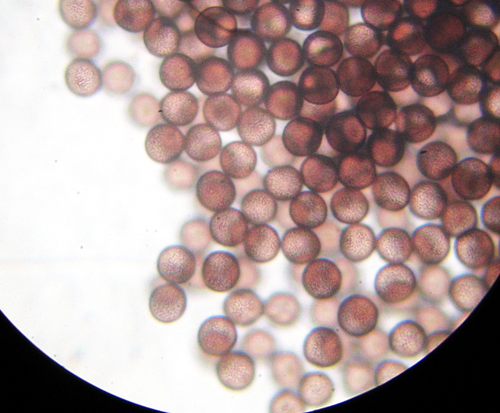 die Sporen 9-12µ rundlich, bräunlich mit feinwarziger Struktur,